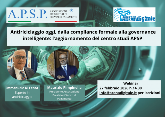 In questo webinar di formazione, promosso dal Centro Studi dell’Associazione Prestatori Servizi di Pagamento, in collaborazione con Arena Digitale, Emannuele Di Fenza guiderà i partecipanti in un percorso chiaro e concreto attraverso i pilastri dell’AML moderno, analizzando l’evoluzione dei modelli organizzativi, il rafforzamento dei controlli interni, il ruolo centrale della formazione delle risorse e l’impatto crescente delle soluzioni informatiche e dell’intelligenza artificiale nei sistemi di prevenzione.